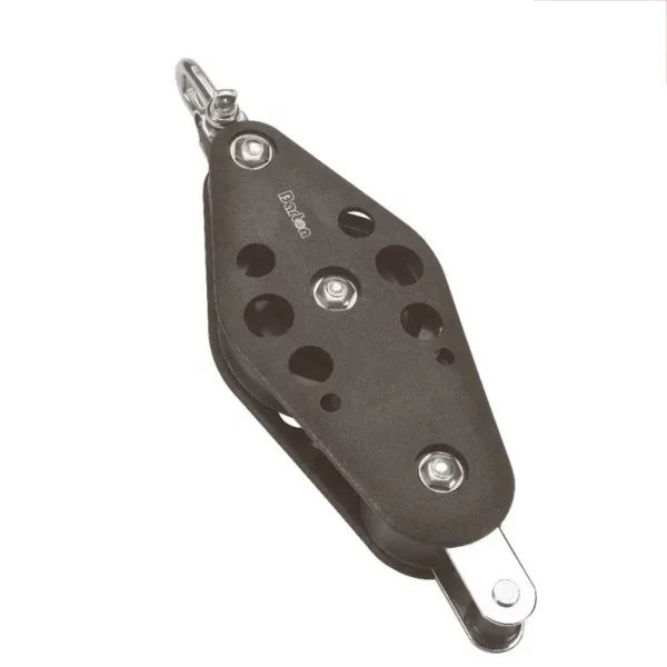 The Barton N16421 Size 6 44/72mm Ball Bearing Pulley Block Fiddle Reverse Shackle features rugged moulded side plates and stainless steel components for strength and smooth operation. This high load fiddle block weighs 370 g, supports a SWL of 1000kg, and is suitable for large yachts.