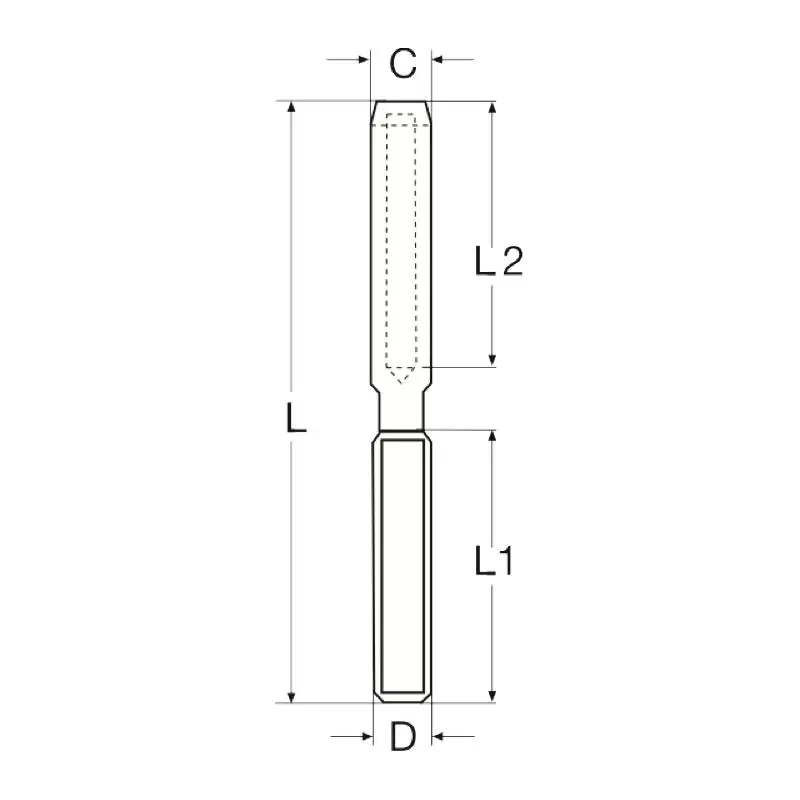 This left-hand swage stud terminal is crafted from durable AISI 316 stainless steel and features a roller terminal, allowing both clockwise and anti-clockwise rotation.