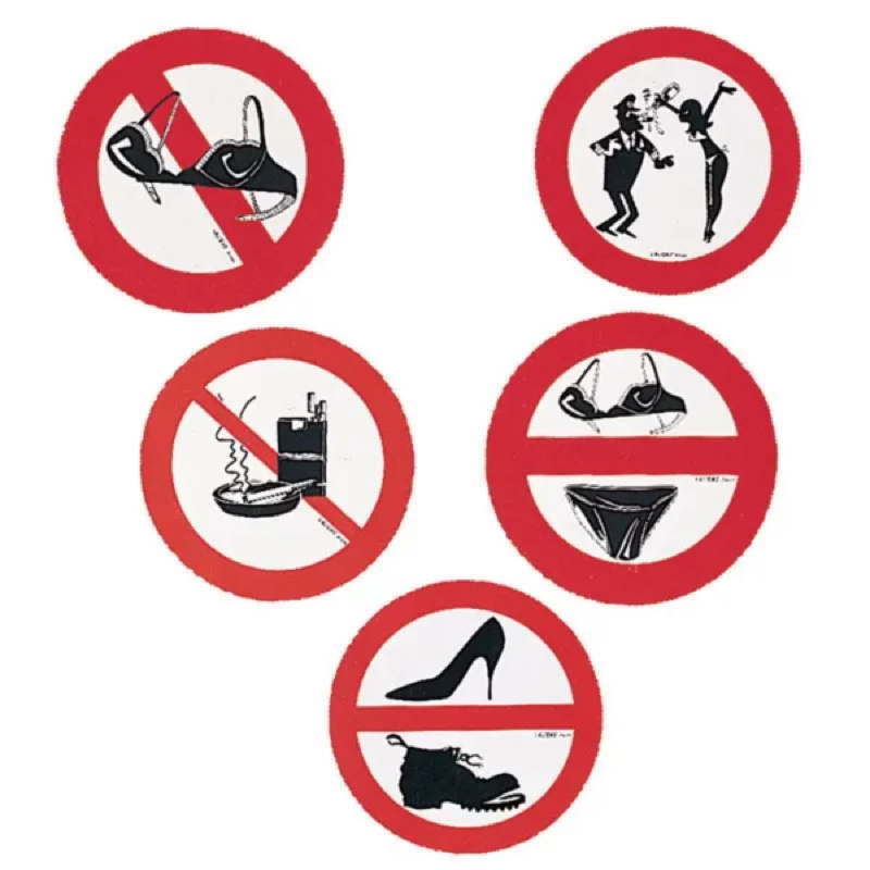 Durable PVC sticker to clearly indicate areas where swimsuits are not allowed on board.