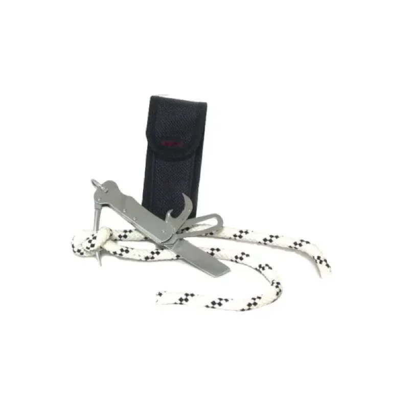 This compact 9.5 cm skipper’s knife offers multiple practical tools for boating and outdoor use. It includes a lock opener, marl piercer, and can opener, all stored conveniently in a protective case.