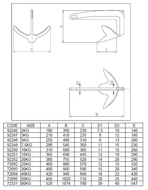 This stainless steel Bruce anchor offers reliable holding power for boats up to 90 ft. Its design ensures secure anchoring in diverse seabed conditions.