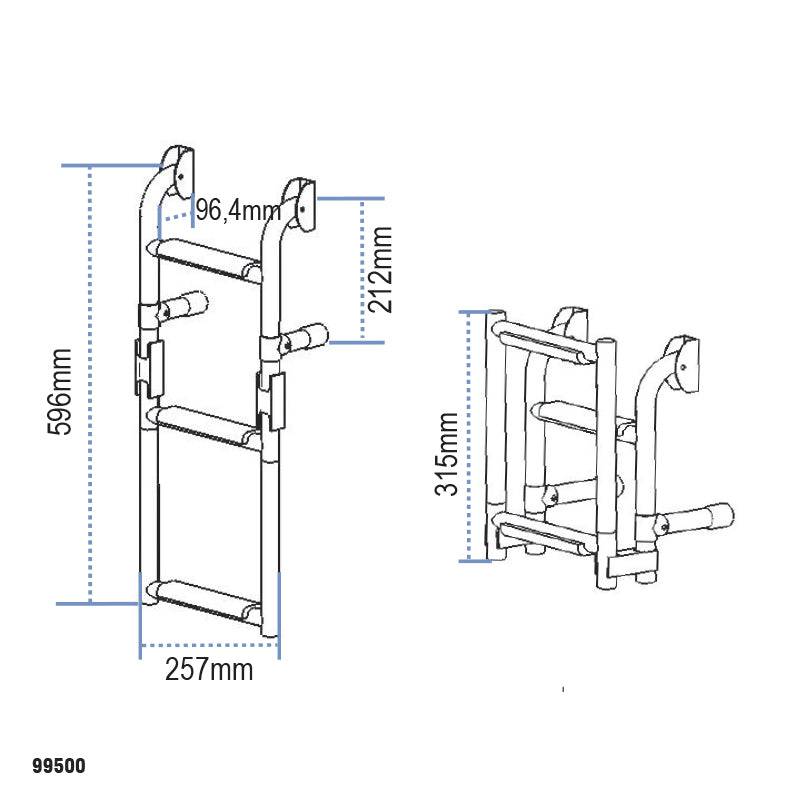 Lalizas 99500 - Folding Ladder For Transom, Stainless Steel 316, 1+2 Steps, 257x596mm