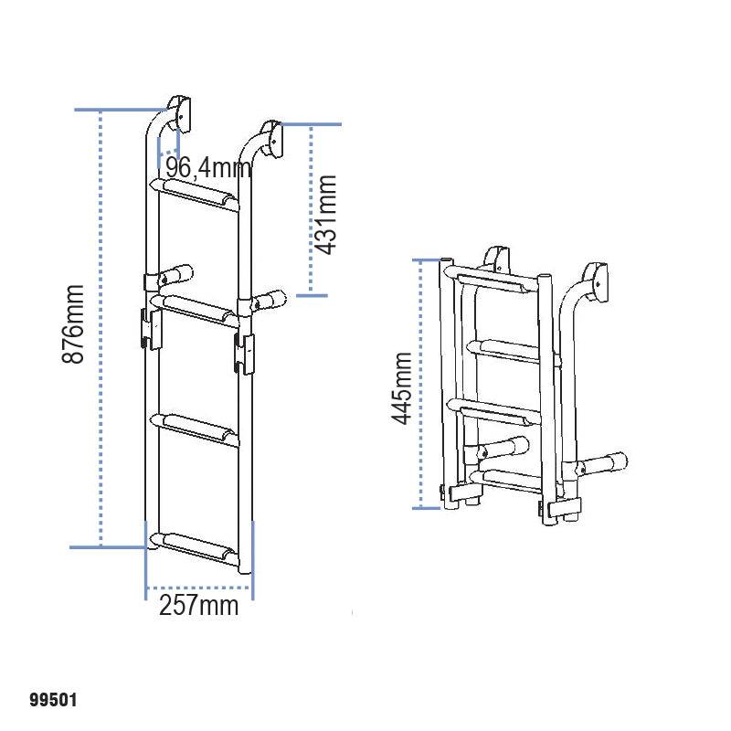 Lalizas 99501 - Folding Ladder For Transom, Stainless Steel 316, 2+2 Steps, 257x865mm