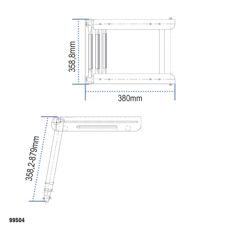 Lalizas 99504 - Platform Ladder, Telescopic, 3 Steps, Stainless Steel 316, 295x870mm