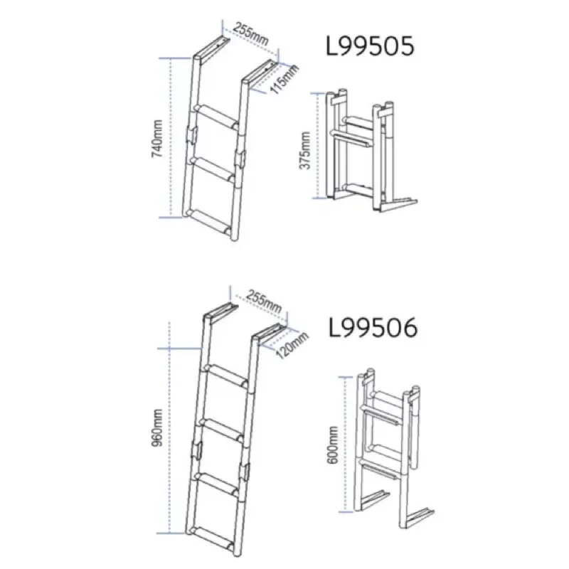Compact and sturdy, this ladder features 1+2 steps with 22mm tube diameter for safe boarding from decks or platforms.