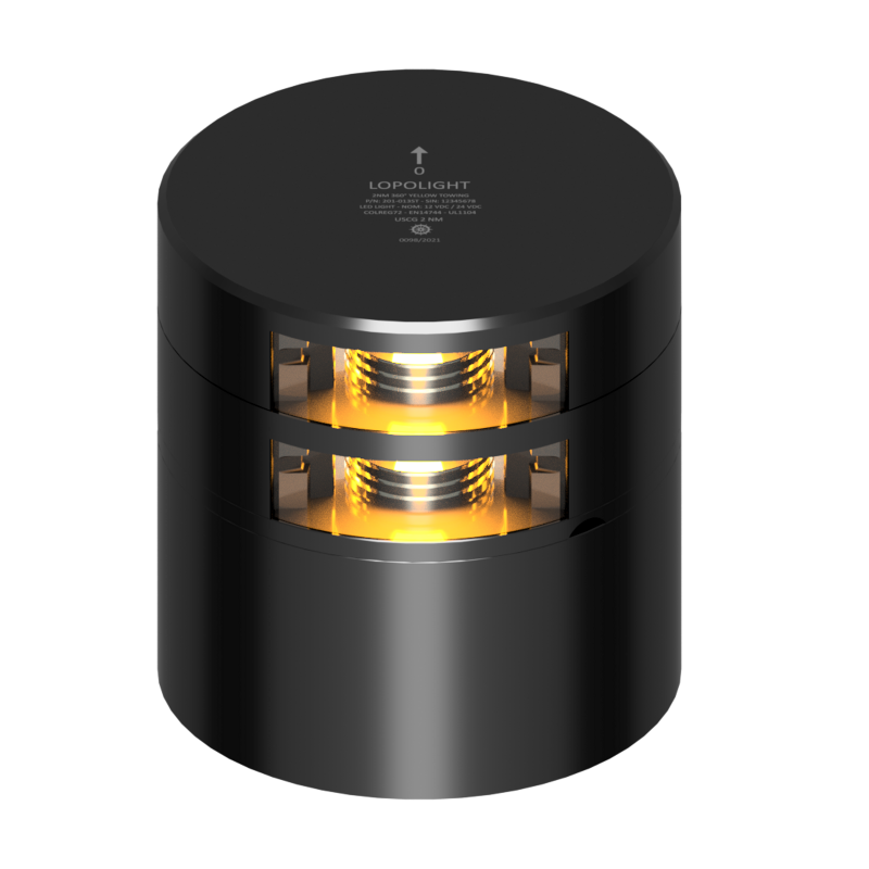 Lopolight 201-013ST-B-CD - Navigation Light 2NM 135° Yellow, Towing, Double, Black w/Connector & CD-Base