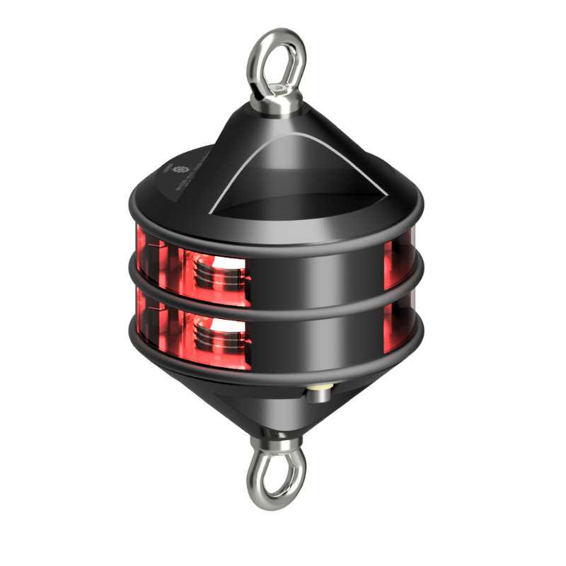 This navigation light offers 360° visibility in red, designed for safe hoistable installation. Its durable black anodized finish ensures long-lasting performance in marine environments.
