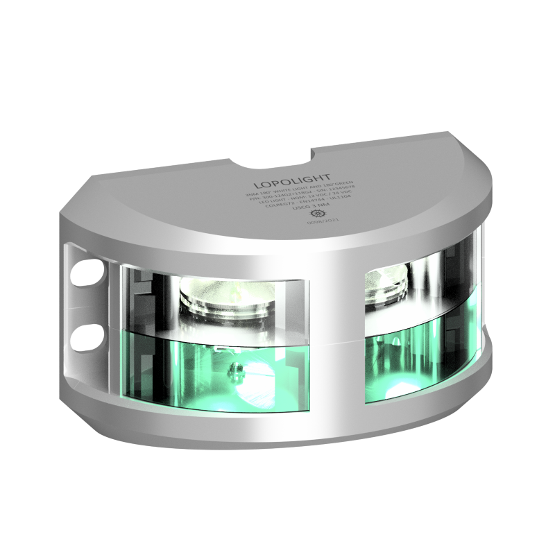 Lopolight 300-124G2+118G2 - Navigation Light 3NM 180° White & Green Silver Anodized
