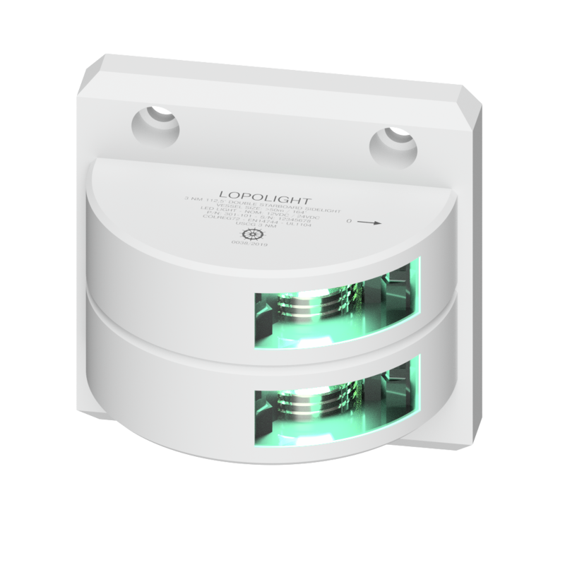 Lopolight 301-001ST-WH - Navigation Light 2NM 112.5° Green Starboard Double White Coated