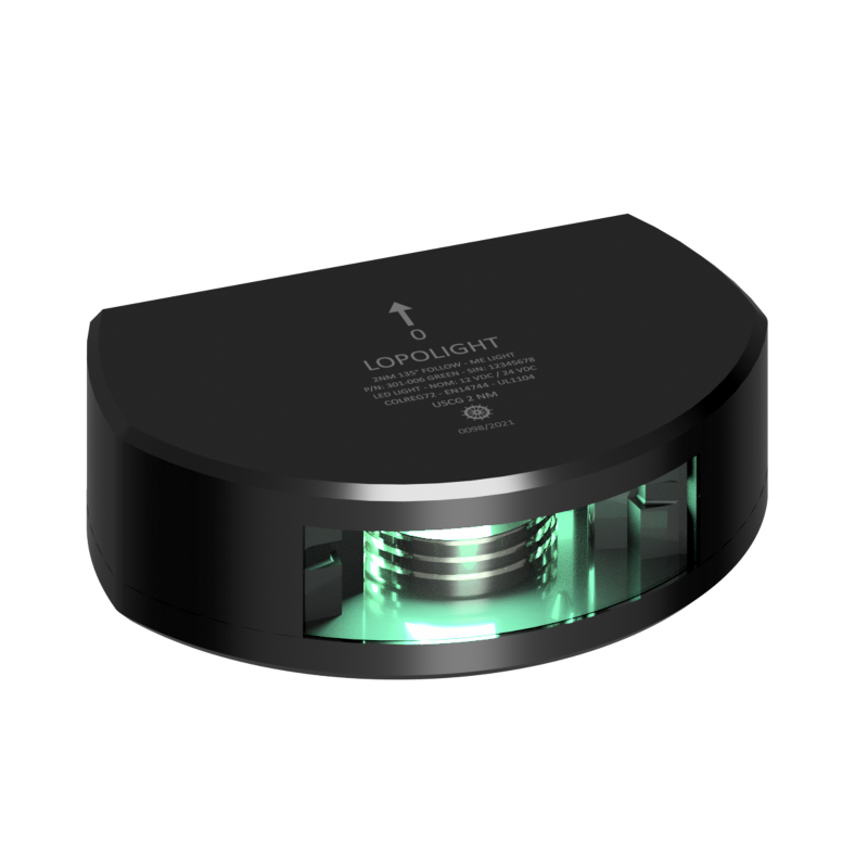 Lopolight 301-006-B-GREEN - Navigation Light 2NM 135° Green Follow-Me Stern, Black Anodized
