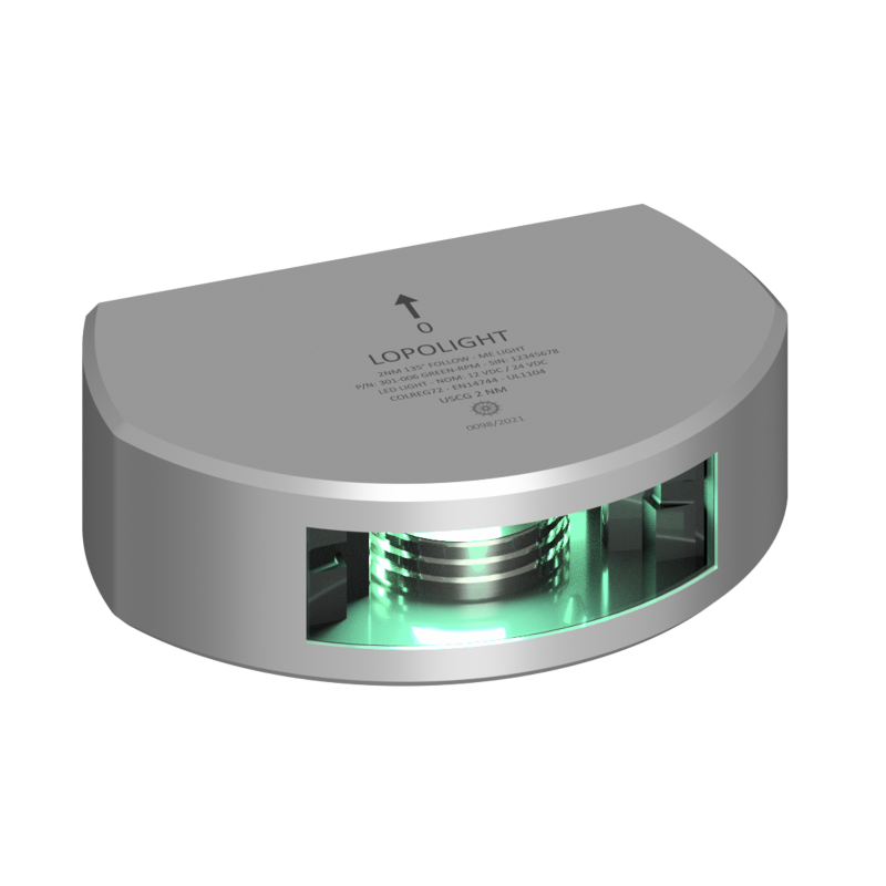 Lopolight 301-006-GREEN-RPM - Navigation Light 2NM 135° Green Follow-Me Stern, Vertical Mount, Dimm