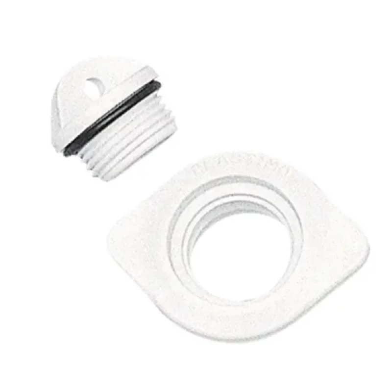 Oval drain socket with plug in white, featuring a compact design for efficient water drainage on deck surfaces. Easy to install and maintain.