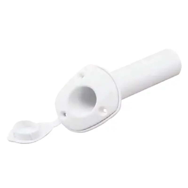 - Durable plastic rod holder with cap, ideal for securely holding fishing rods, internal diameter Ø40mm and height 230mm, in white color.