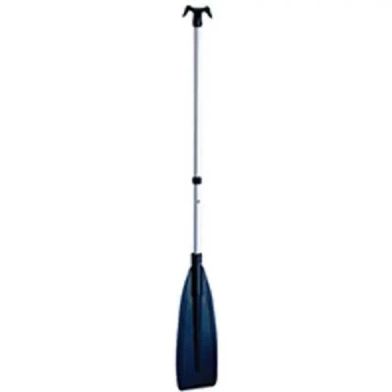 Designed for canoeing and paddleboats, this telescopic paddle allows adjustable length with a quarter-turn locking mechanism. It features an anodised aluminium pole, a PP paddle, and a plastic double hook.