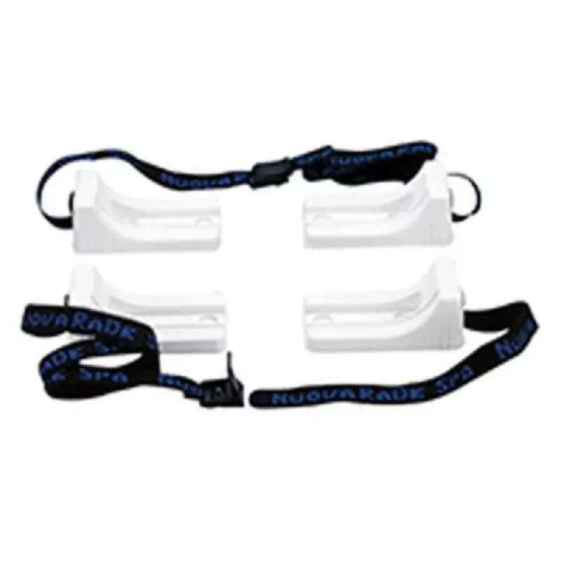 The Nuova Rade 44838 Universal Bracket comes with holding straps for securely fixing tanks and liferafts on board, ensuring stable placement during transport or use.