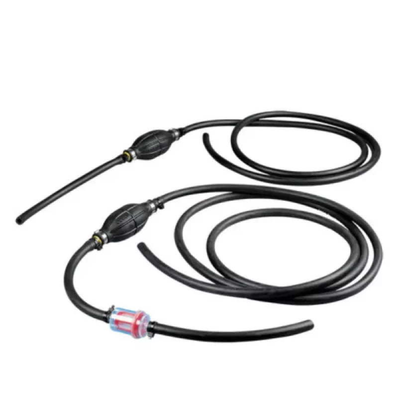 The Nuova Rade 45387 Fuel Primer Bulb includes a 45mm bulb and a 2m PVC fiber-reinforced hose of 8mm diameter without a filter, ideal for simple and reliable fuel priming.