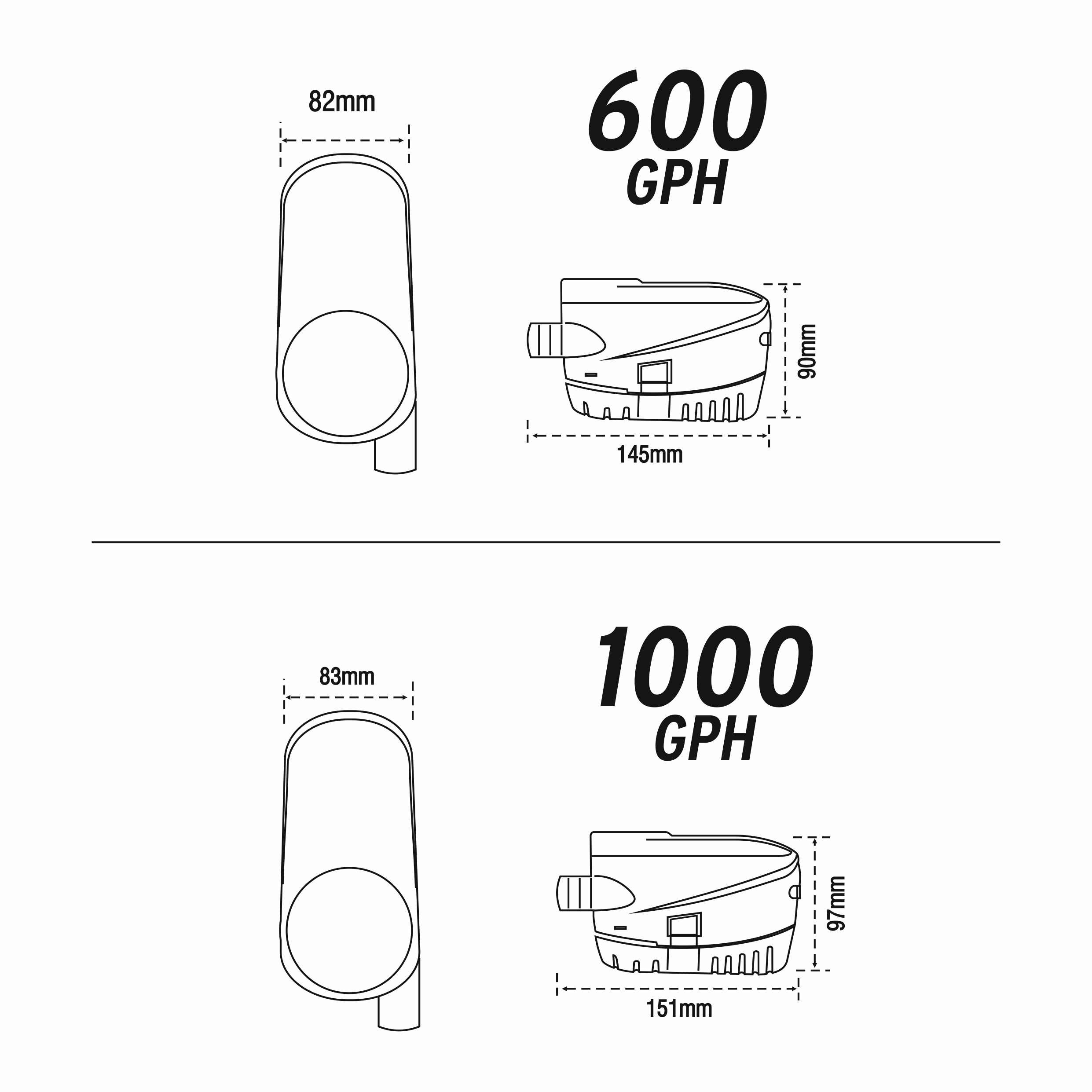 - Pumping capacity: 600GPH through 19mm (3/4”) hose, 1000GPH through 25mm (1”) hose