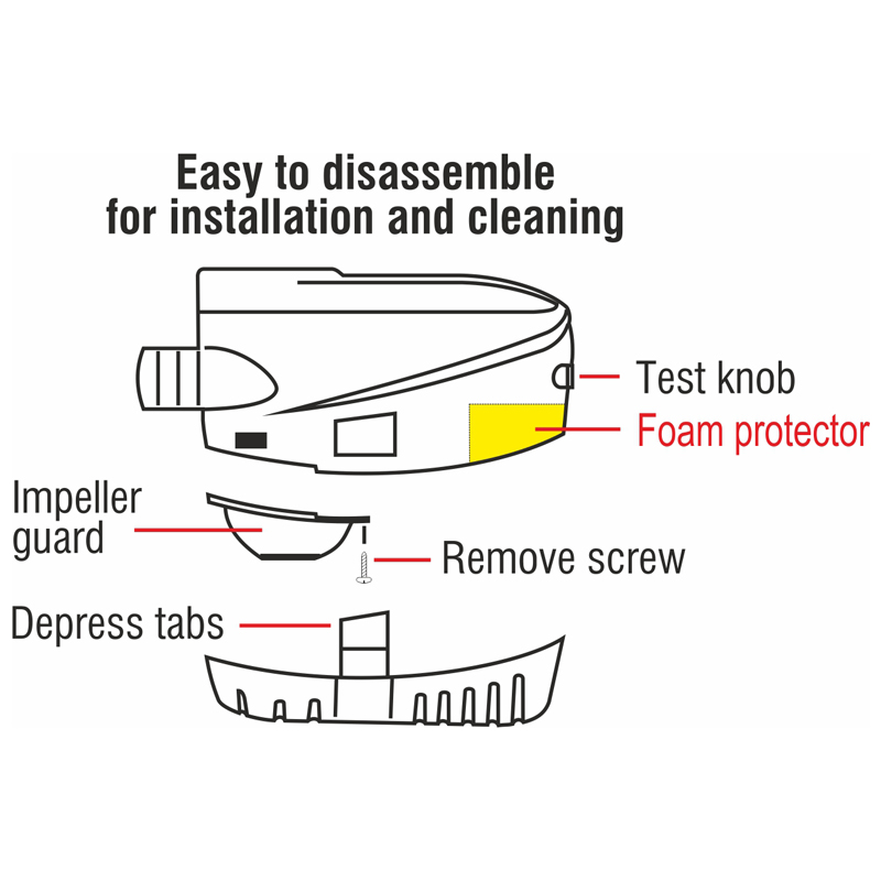 The Nuova Rade 73722 Submersible Automatic Bilge Pump 1000GPH 24V provides reliable unattended operation with an automatic float switch and manual test button. It has simple installation, a snap-on strainer base, durable ASA construction, and is CE certified with a 2-year warranty.