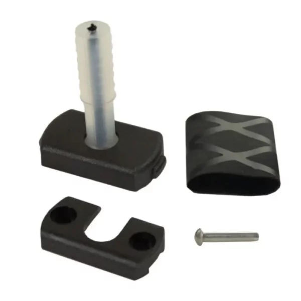 This robust rubber joint for 20 mm tiller extensions features a reinforced rope core to prevent complete failure if the rubber tears. It comes with a longer mounting pin and wider heat-shrink tubing, providing secure attachment. The mounting hole spacing is 32 mm, and removal is simple by cutting the tubing and pushing out the pin.