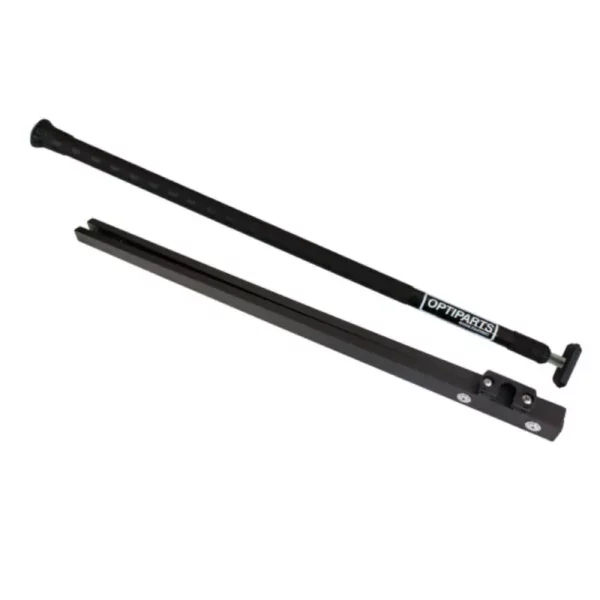The Optiparts EX1127 is a 51 cm black anodized aluminum Optimist tiller with a 70 cm X-gripped extension, providing extended reach for taller sailors. It features a releasable rubber joint with a rope core for secure and flexible handling and reaches the maximum allowed length when combined with the shorter tiller.
