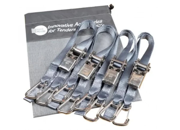 These stainless steel 316 kits support tenders up to 1450 kg. The one-piece snap hook system allows quick and secure attachment from the bow to the transom.