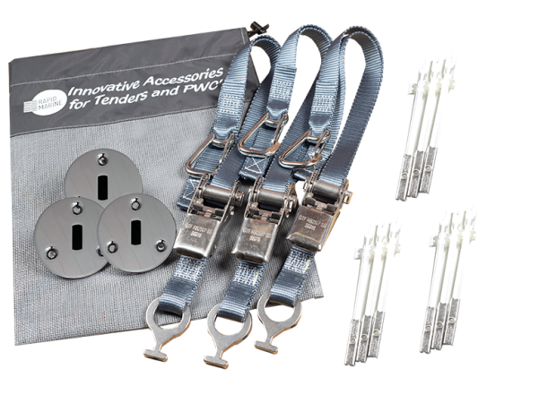 Rapid Marine PE25FFKIT-3-GY - Padeye Kit - Flush Fitting x 3, 3x25mm Tie Down Straps Grey