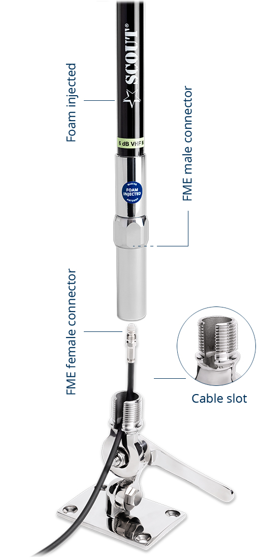 The Scout Quick 6 Black Edition represents a new generation of ready-to-install marine antennas. Designed for effortless setup, these antennas require no special tools or RF connectors, thanks to the QuickFit system. Fully waterproof with Scout’s foam injection technology, they are robust, reliable, and ideal for long-range VHF communication.