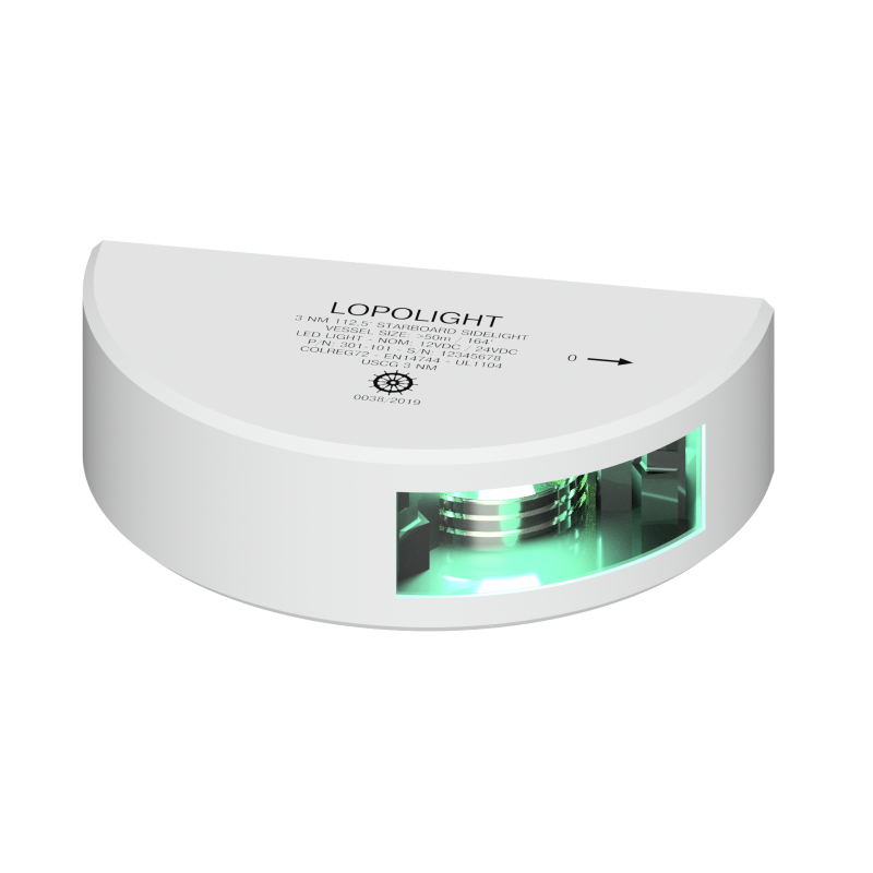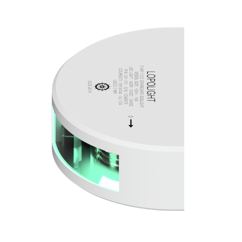 Lopolight 301-101-WH - Navigation Light 3NM 112,5° Green, Starboard, White Ceramic Coated