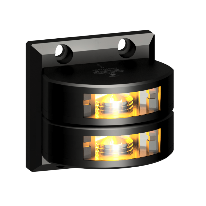 The Lopolight 301-107ST-B is a black anodized version of the 135° double yellow towing light, offering 3NM visibility and vertical mounting. Built for large vessels, it ensures consistent performance and durability in demanding maritime environments.