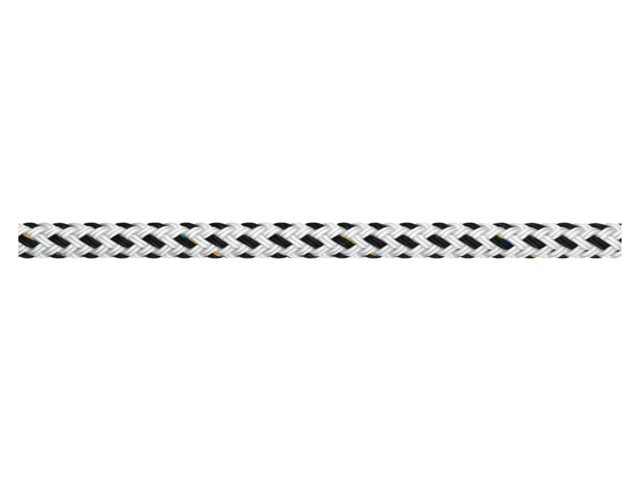 The 16mm diameter Talamex Polyester Porto rope is perfect for mooring and anchor lines, combining strong wear resistance with a special 20-plaited design that allows large stretch. The rope is white with black markings.