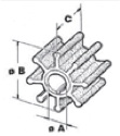 The Allpa 500305 is a six-blade impeller suitable for outboard engines, built to ensure consistent cooling and water flow.